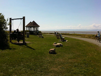 I've wanted to cycle this stretch of gravel pathway for many years since it parallels the four lane hwy 20 for the entire 15km and every time I have driven to or from the east coast I've drooled while eyeing the cyclists along it, green with envy. The St. Lawrence stretched out on my left and it was difficult to keep my eyes on the path.